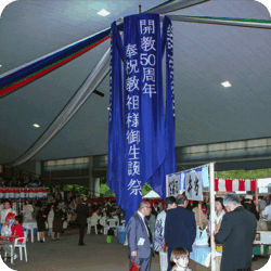 開教80周年の各大祭において、開教の意義と80年間におよぶ御聖業を、改めて畏敬の念をもって学ばせていただくとともに、御縁を頂いた私たちは、数限りない御加護、お導きを賜っていることに対して、感謝の気持ちをさまざまな形で実行する節目の機会とさせていただきます。